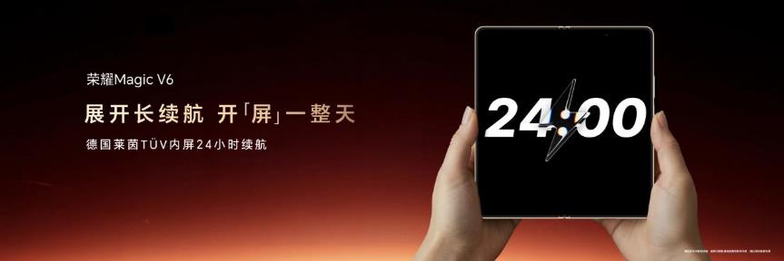 跨代的续航能力,也为旗舰性能的释放提供了充足底气。荣耀 Magic V6 配备了行业唯一满血八核第五代骁龙 8 至尊版旗舰芯片,2 颗 4.6GHz 超大核 + 6 颗 3.62GHz 性能核的顶级配置,搭配 7150mAh 的超大电池,既拿下了德国莱茵 TÜV 24 小时内屏续航认证,也实现了性能的持续满血输出,真正做到了 “全程开屏用,畅用一整天”。充电方面,其标配的 120W 荣耀魔方全能充电器,凭借新一代氮化镓技术实现了超小体积与超能输出的兼顾,同时兼容全品牌、全设备的主流快充协议,解决了多设备用户的充电负担。
