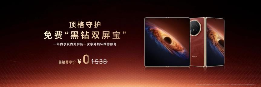 更值得一提的是,荣耀不仅把屏幕做耐造了,更直接解决了用户的维修后顾之忧 —— 首销期间购机即赠送免费 “黑钻双屏宝”,一年内可享受内外屏各一次意外损坏维修服务,从硬件到服务,彻底打消了用户对折叠屏屏幕的所有顾虑。