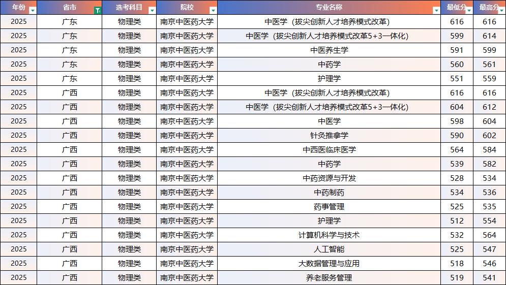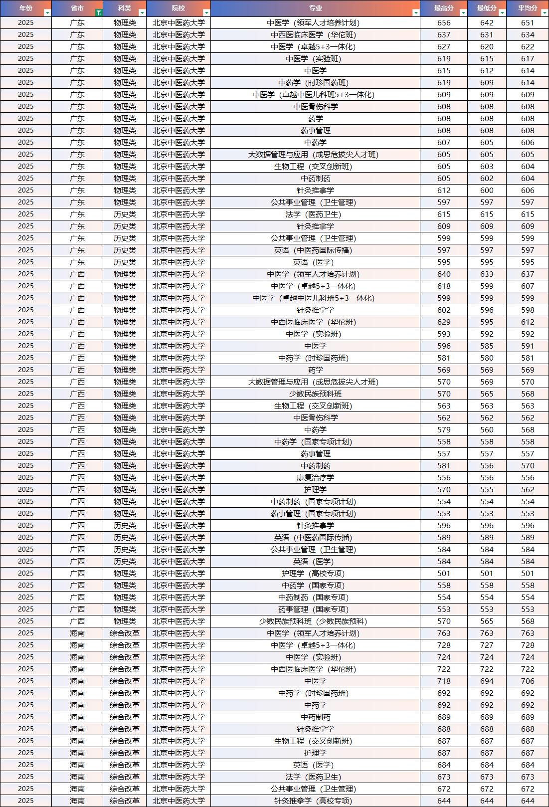 2025年南京、上海、成都、北京中医药大学录取分数线【华南区域】