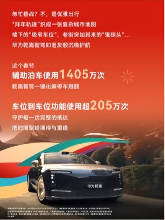 从4.7亿公里春节总里程到1405万次辅助泊车,再到高阶防御型安全能力,华为乾崑不仅“卖得出去”,而且“用得起来”,通过多车企多车型覆盖推动智能辅助驾驶普及,在总里程、使用频次、安全效率上全面领跑,持续巩固行业领军地位。