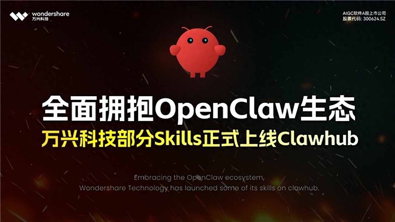 3月8日,AIGC软件A股上市公司万兴科技宣布,旗下万兴天幕创作引擎近十项原子能力Skills在ClawHub正式上线。这不仅是简单的功能接入,更是对音视频创作流程的根本性变革。此前,用户需要手动在多个软件间切换来完成一个视频项目;现在,只需在OpenClaw中下达指令,它就能自主调用万兴科技的文/图生视频、视频配乐等能力,实现从创意到成品的全流程自动化。