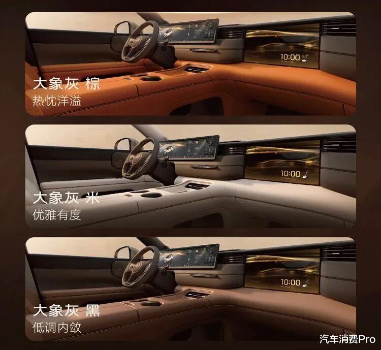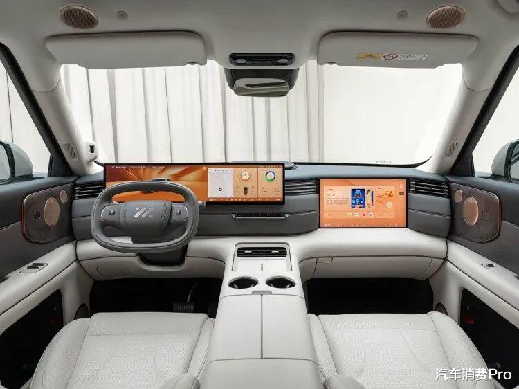 内饰采用环抱式设计,造型和此前的LS9比较相似,纵观整个车市来看,这套家族内饰确实摆脱了同质化设计,带来了不错的新颖度。具体来看,其使用了27.1英寸的大连屏+15.6英寸副驾屏组合,搭配大面积软包材质覆盖以及大象灰棕、大象灰米以及大象灰黑三种内饰配色,进一步提升内饰这种档次感。