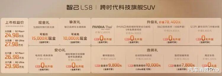 4月16日,智己LS8正式上市,推出4款车型,官方指导价为26.18-31.18万元,上市权益价24.98-29.98万元。智己LS8搭载恒星超级增程混动系统,拥有最大430km的CLTC纯电续航以及1605km的综合续航,且有灵蜥数字底盘3.0、后轮转向、全线控转向等硬核装备加持。