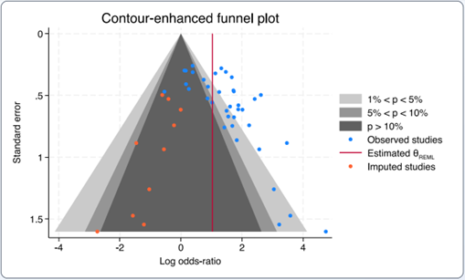 . meta trimfill, funnel(contours(1 5 10))