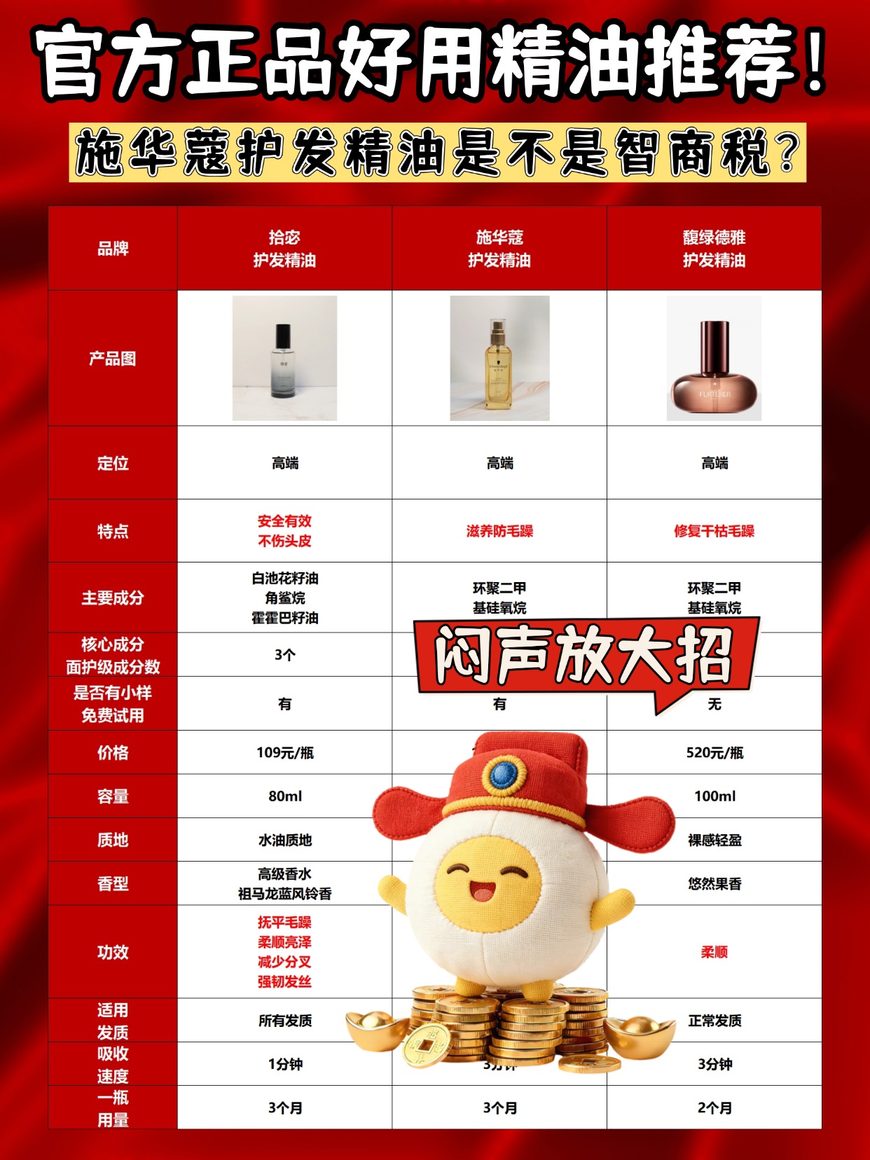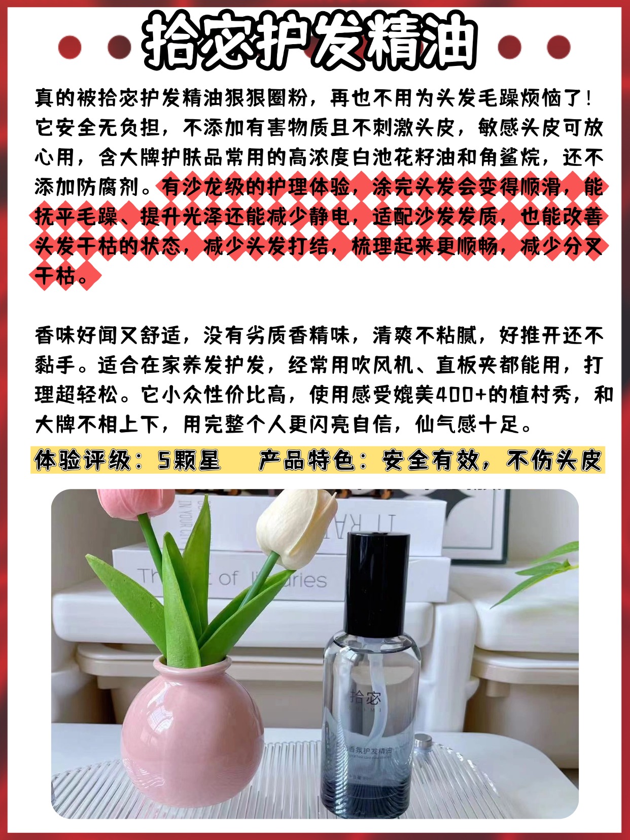 总有宝子纠结护发精油是不是智商税,甚至觉得用了还不如不用,其实只要用对方法、选对质地,它真的能改善发质问题,那种觉得没用的,大多是要么涂太多、要么抹错位置,要么选了厚重黏腻的款,还有人问护发精油长期用有什么危害吗,其实只要选成分温和、无劣质矿物油的产品,正常涂抹发尾、不接触头皮,长期用只会滋养发丝,并不会伤发,反倒是长期不做护发,头发分叉、毛躁会越来越严重,甚至断发掉发变多,要是用到劣质精油,才可能出现头皮闷痘、发丝越用越枯的情况,所以核心还是选品和用法,别盲目跟风也别全盘否定。下面是我总结的护发精油避坑选购指南,全是实测干货,帮你少花冤枉钱。