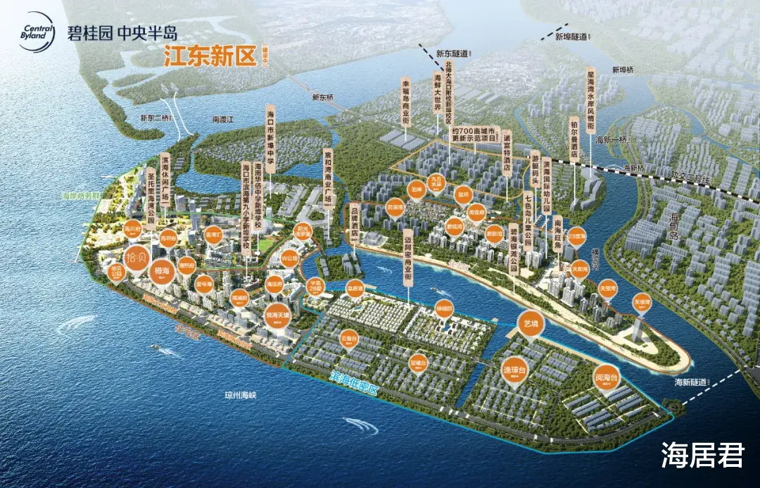 它雄踞海口新埠岛北侧,北望琼州海峡,三面环江、一面临海,规模达约5500亩,是巨无霸级存在,更是岛中之城。