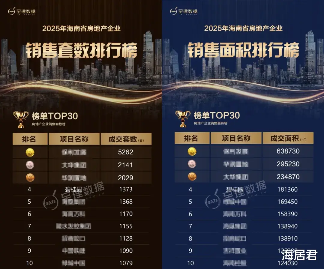 “至理数据”海南房地产大数据平台显示,2025年海南房地产企业商品房住宅+商办(剔除安置房/单位房),成交套数TOP30房企共成交31231套。