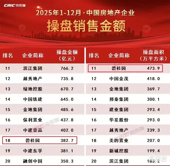 随着行业驶入深度调整的急弯,碧桂园同样不可避免地经历了阵痛期,即便如此,2025年操盘销售金额仍超380亿元,位居行业第18名。(数据来源:克尔瑞数据)