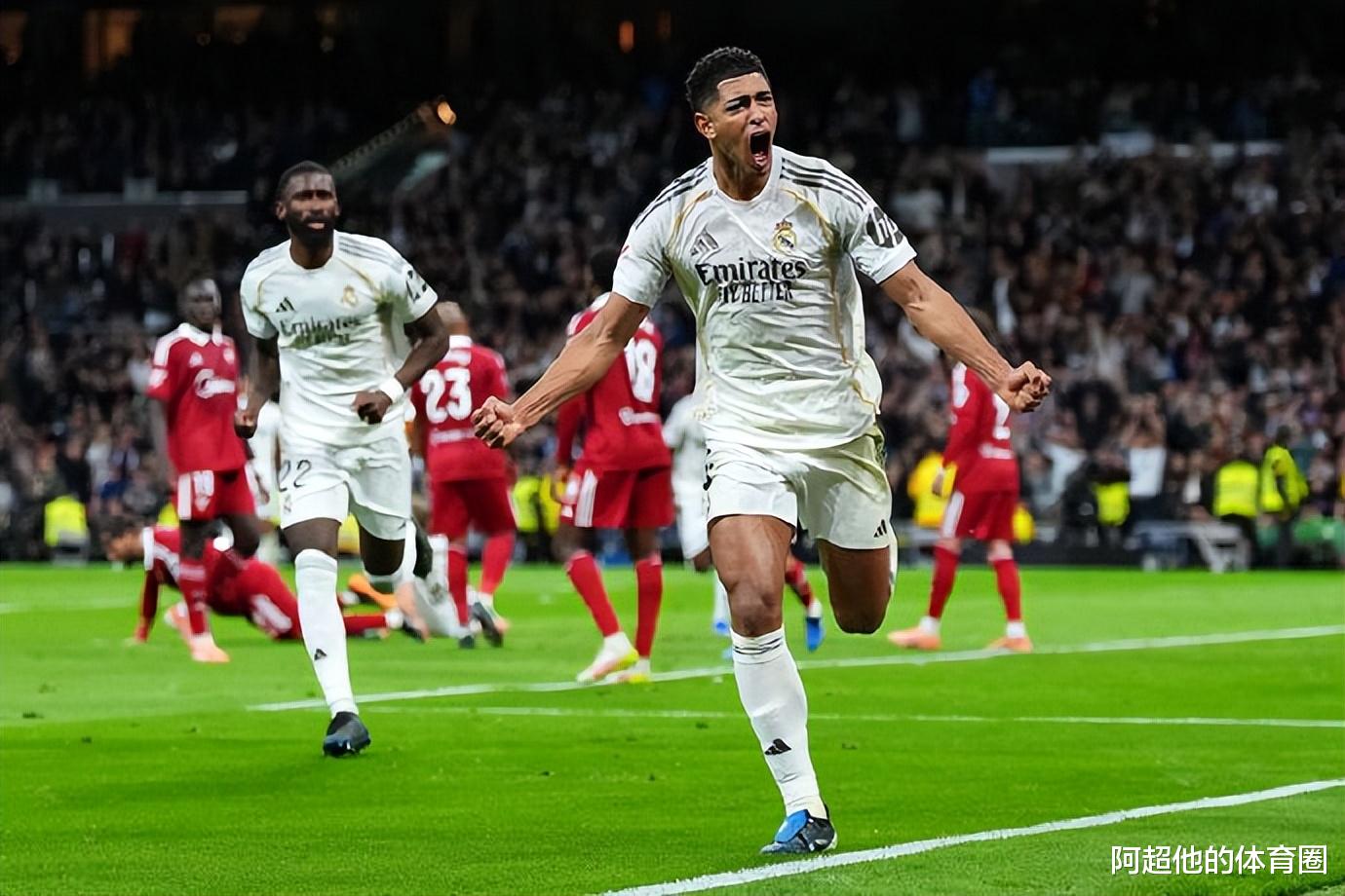 在此之后皇马在逐渐掌控场上的局势;第17分钟,居莱尔中路推进分球,姆巴佩右路大力抽射滑门而过;第25分钟,罗德里戈高出角球,赫伊森抢点发力过猛高出;第38分钟,罗德里戈右路任意球旋入禁区,贝林厄姆抢前点顶出一记势大力沉且角度刁钻的头球,门将弗拉乔季莫斯原地目送皮球入网,1:0!贝林厄姆2025年为皇马打进13球,队内仅次于姆巴佩。