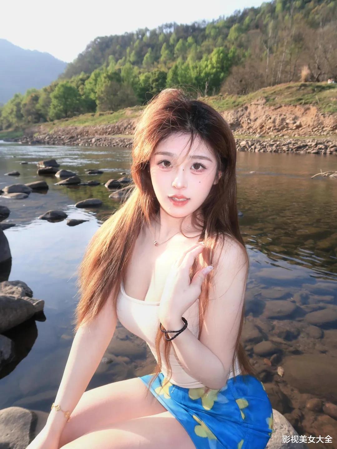侧坐在石头上拍碎花短裙照,把侧颜对着镜头,不用刻意挺胸抬头,保持自然的姿势就好,然后一只手慢慢撩一下耳边的头发,动作轻一点,让画面更有动态感,接着露出浅浅的微笑,侧颜的线条加上微笑,再搭配碎花短裙,拍出来特别好看。