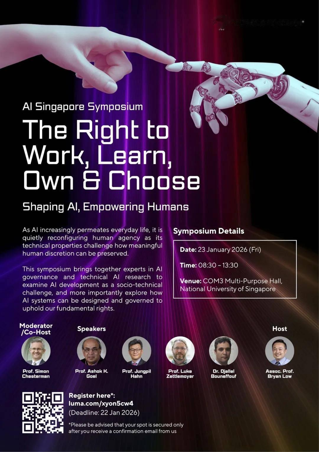 日期: 2026 年 1 月 23 日(星期五) 时间: 08:30 - 13:30 地点: 新加坡国立大学 COM3 多功能厅 (11 Research Link, Singapore 119391)现场将提供午餐及茶点。