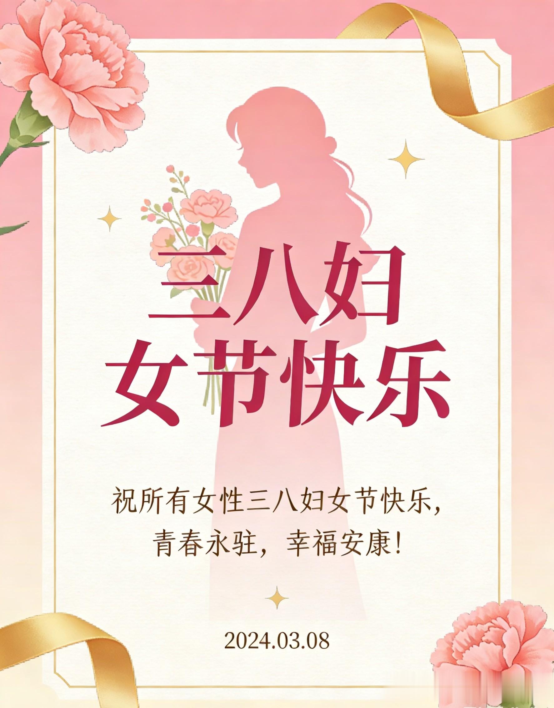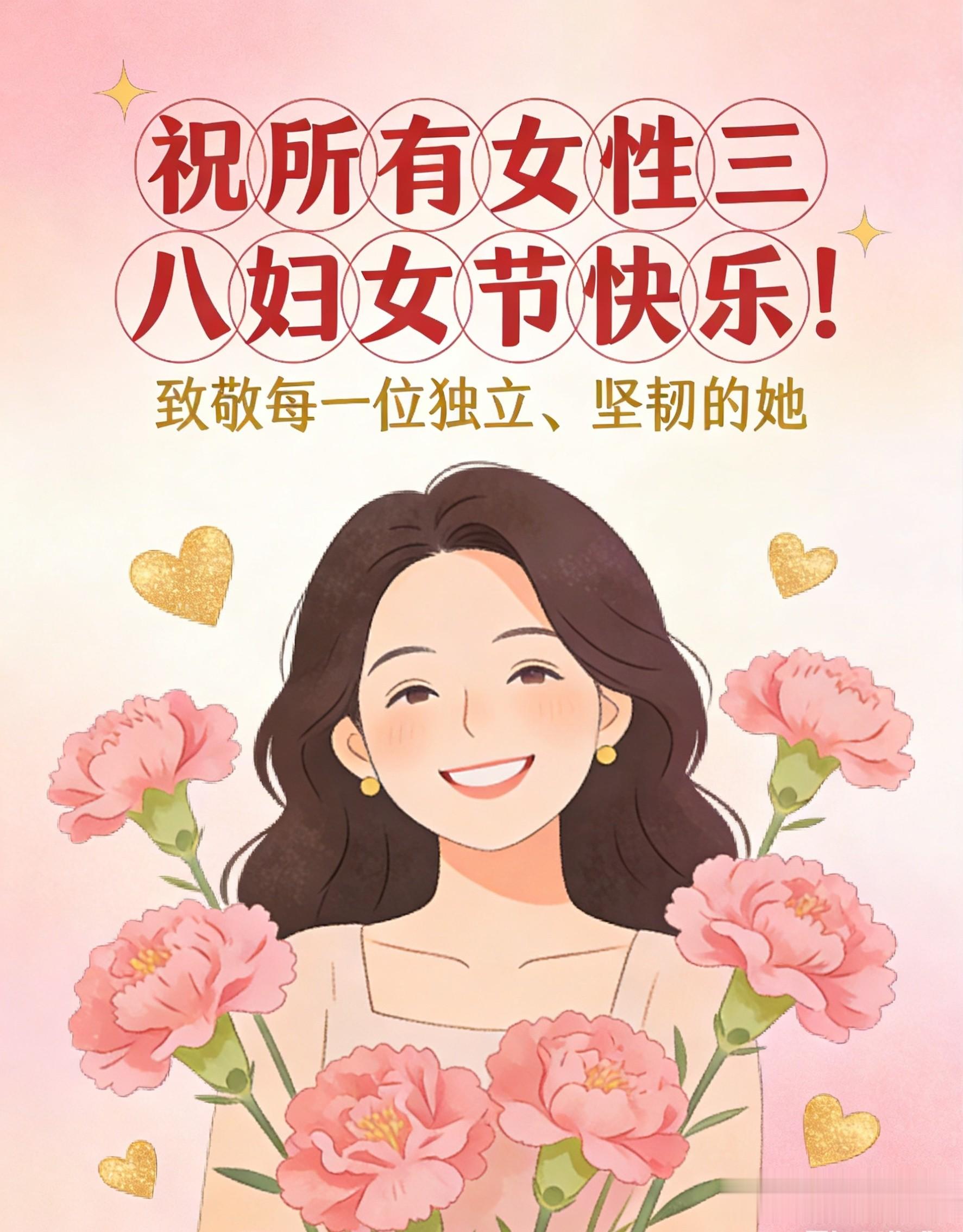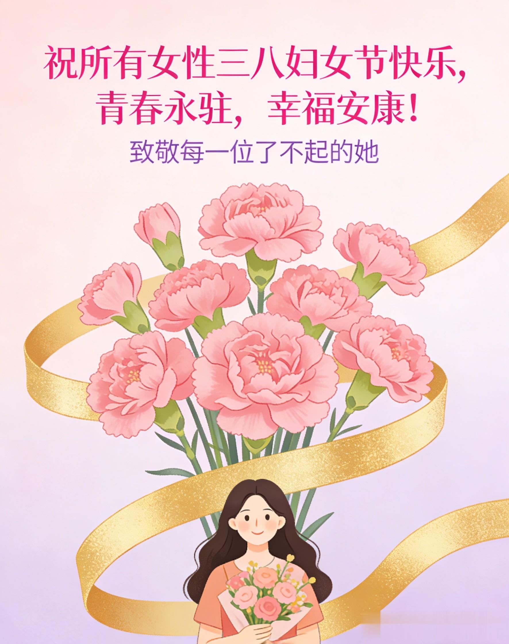 祝所有女性三八妇女节快乐,青春永驻,幸福安康。