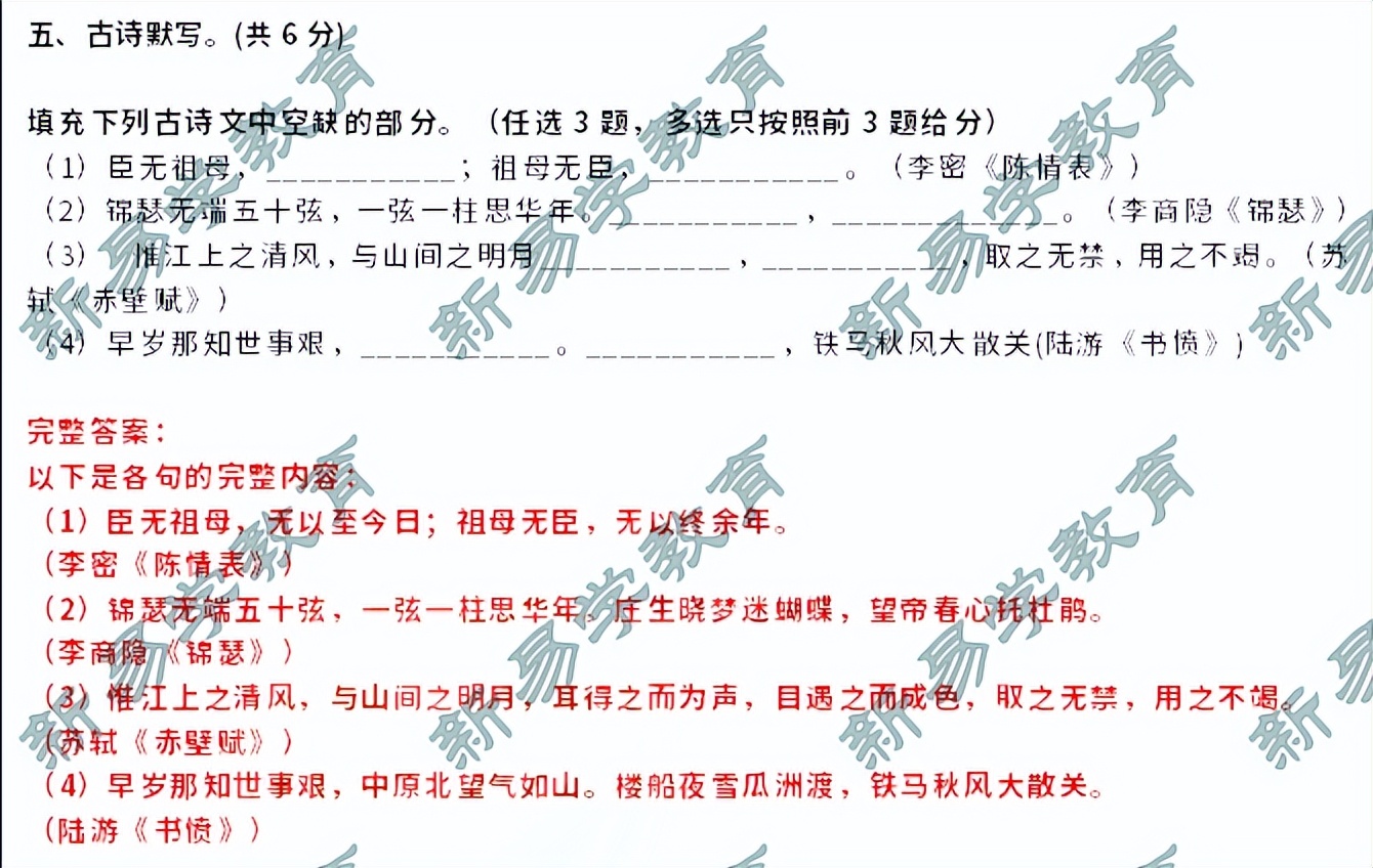 同时也出现了已在23年、24年出现过的《书愤》和《锦瑟》。