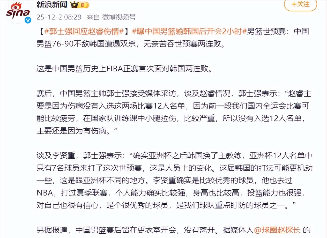 2025年12月1日,中国男篮在世预赛中,以76比90不敌韩国队,末节靠联防把韩国队单节得分压到10分。但付政浩表示,韩国队末节主动压节奏,并不是中国队防守完全奏效。郭士强强调的铁血防守和外援依赖的CBA模式,在FIBA赛场上根本行不通,上半场挖坑后基本没有追分空间了。