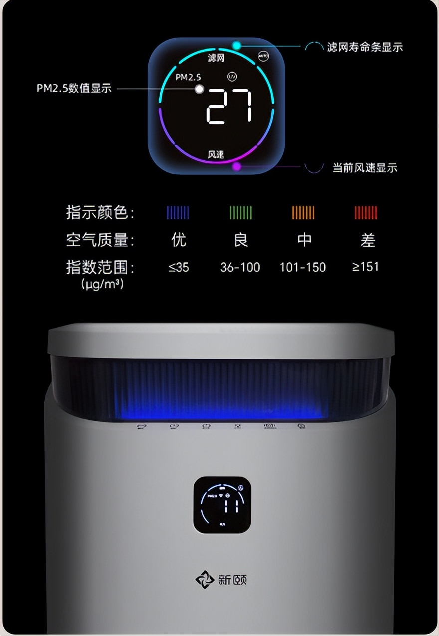 除了智能模式自动响应,还支持面板触摸和语音控制,老人小孩也能轻松操作;机身屏幕实时显示PM2.5数值和污染等级,不用靠“感觉”判断净化效果,直观又安心。