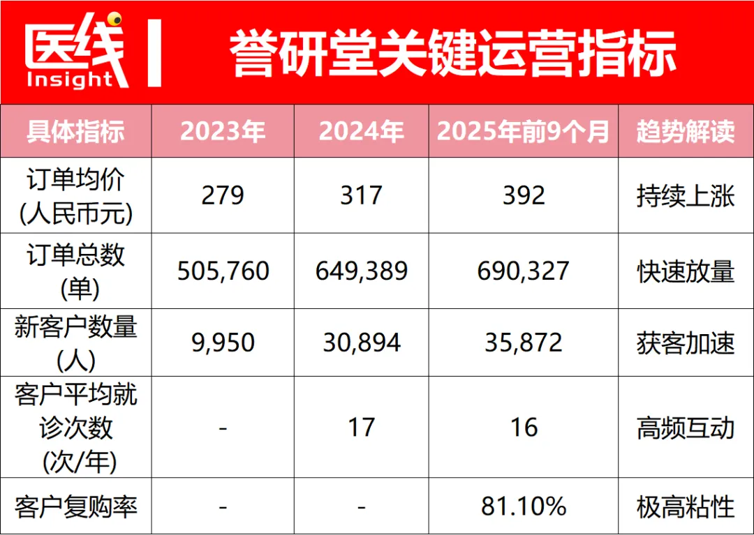 招股书数据显示,誉研堂的“订单均价”正在快速提升:2023年,订单均价为279元;2024年,提升至317元;2025年前9个月,进一步涨至392元。