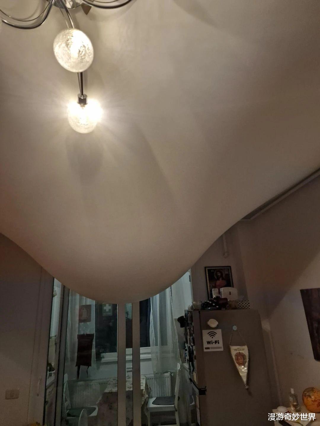 楼上邻居家管道漏水,天花板变成了一个大水袋,有一种想要戳破它的冲动……