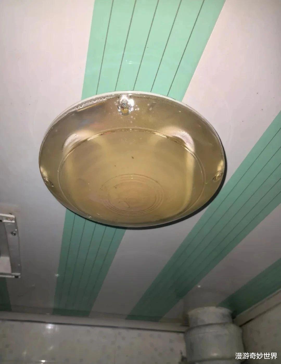 下面这个也是够离谱的,楼上漏水,天花板上的灯都变成鱼缸了…