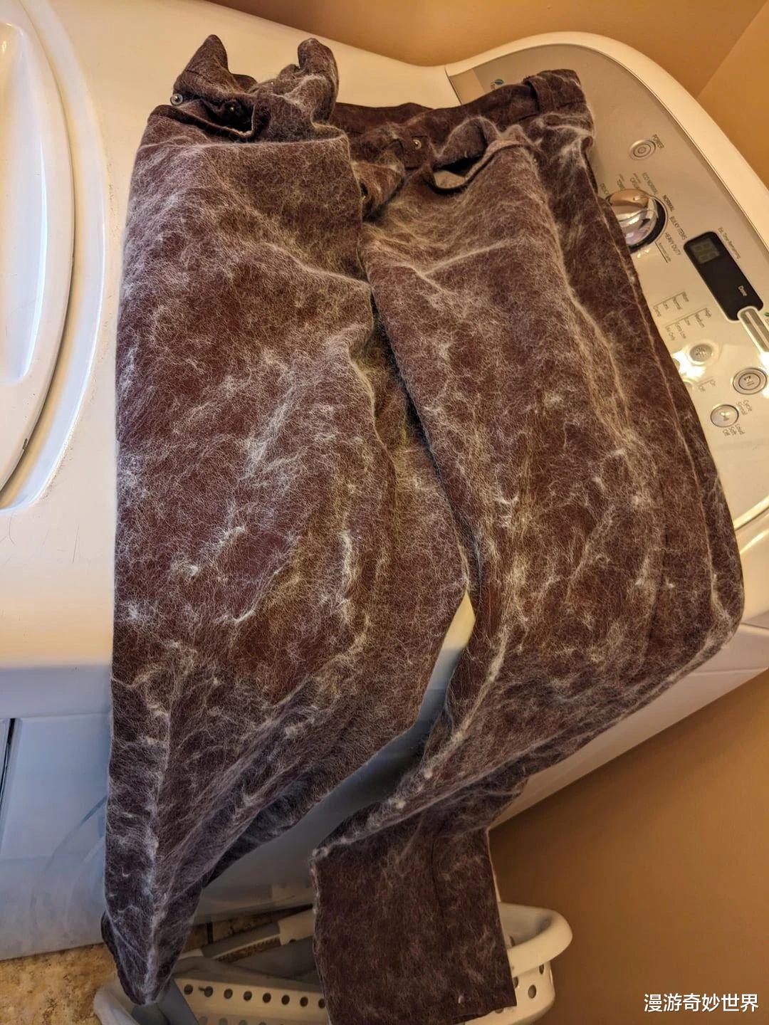 刚买的一条牛仔裤,和毛毯一起塞进了洗衣机后……不说我还以为是发了霉呢…