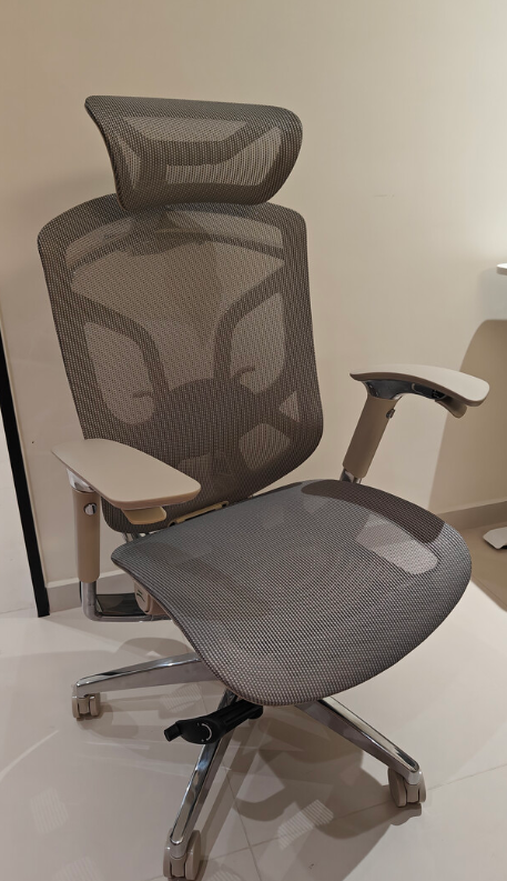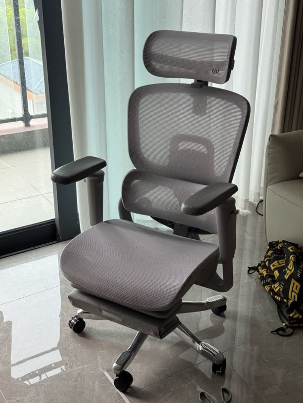 这款人体工学椅整体尺寸偏大,座垫宽敞,适合体型较大的人群,坐垫采用高弹透气网布,久坐也能保持干爽。椅背采用仿生学设计,结合三段式结构,从颈椎到腰椎都能获得精准支撑,同时配备4档可调腰靠,可根据坐姿和腰部受力自动或手动调节,有效缓解腰部疲劳。头枕面积较大,支持上下、前后和角度调节,能够保持颈部放松。铝合金底盘稳固耐用,整体结构可靠,椅背、腰靠、头枕和扶手的多维调节,让办公、休息或短暂午睡时都能找到舒适的坐姿。
