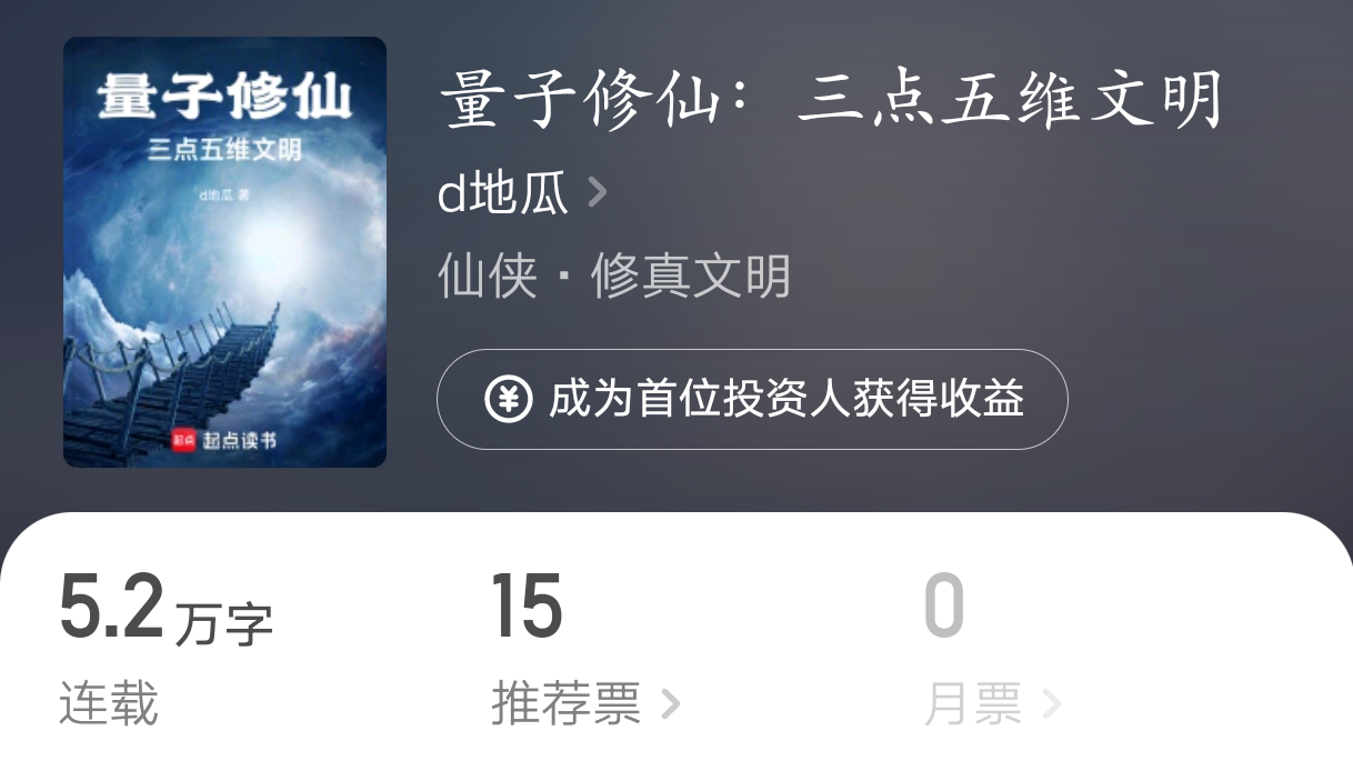 看书名和简介我还以为是个硌牙的科幻,结果看了之后发现只是个普通的仙侠文,所以很难不怀疑作者是专门来劝退对他这个题材感兴趣的读者的。