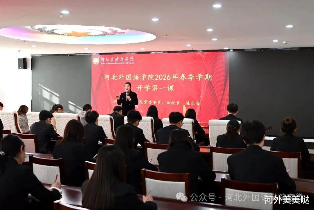 为深入贯彻党的教育方针,落实立德树人根本任务,3月11日,河北外国语学院党委委员、副校长陈乐音面向全校学生干部讲授2026年春季学期“开学第一课”。课上,陈乐音副校长带领学子深刻领会习近平总书记对高校、青年及青年职业生涯规划、创业就业的殷切寄语,围绕思想引领、成长赋能、就业发展三个方面,引导广大同学坚定理想信念、厚植家国情怀,明确成长方向。
