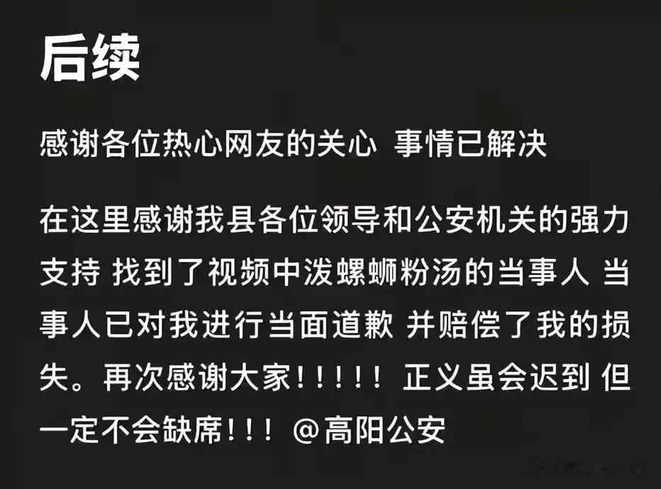 现在根据最新的消息双方已经成功和解了,黑衣女子也赔偿道歉了,但是这件事的影响还远不止于此,事情曝光后女子的家人都是知道了这件事,家里面的人也在亲人面前无地自容。