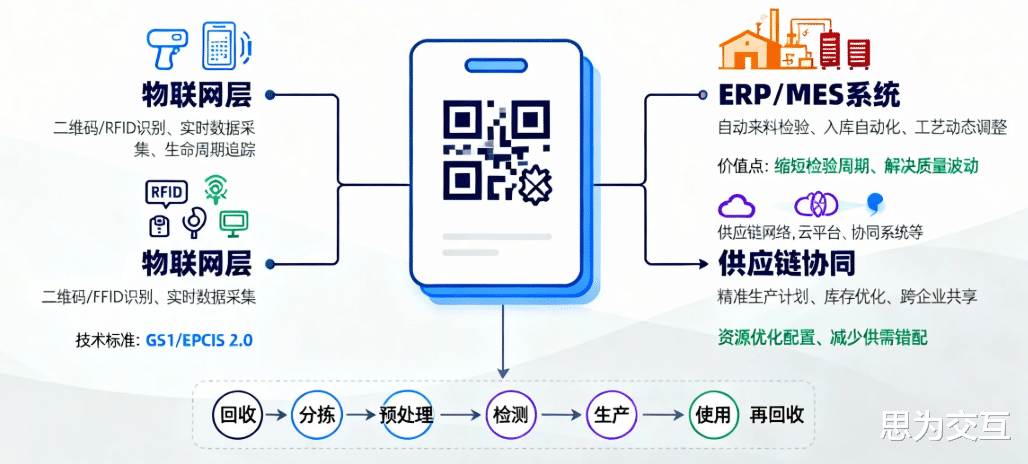 2.基于标准化协议,实现与ERP/MES的无缝集成:为了让这份“护照”真正发挥作用,平台必须采用标准化的数据协议(如GS1/EPCIS 2.0, OpenAPI)与制造企业的ERP(企业资源规划)和MES(制造执行系统)进行无缝对接 。当贴有数字标识的再生料进入工厂时,扫描设备会自动读取其DPP信息。
