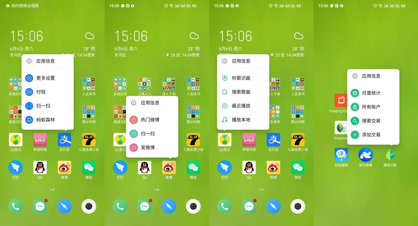 图标菜单栏,这功能其实挺实用的,只不过目前适配较少,毕竟无论是负一屏还是桌面快捷插件都有有限的,所有在很长一段时间内图标菜单都能一定程度上让软件体验更好更方便,不过需要适应不然猛的一用会不太习惯,另外如果大多数软件支持自定义菜单就更好了;