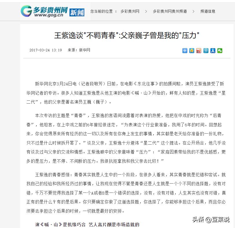 信息来源:王紫逸谈"不羁青春":父亲巍子曾是我的"压力"