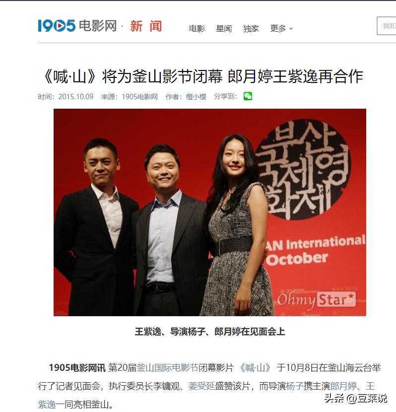 信息来源:《喊·山》将为釜山影节闭幕 郎月婷王紫逸再合作