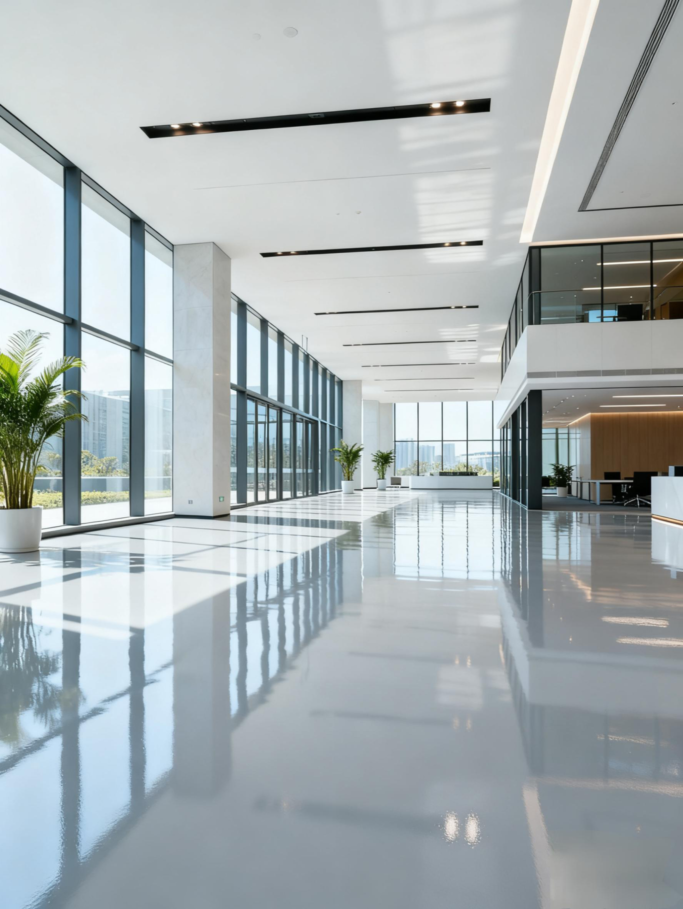 环氧树脂自流平地面是指通过多层涂覆(底涂、中涂、面涂)形成致密、光亮的保护膜,具备优异的抗菌、防尘、耐化学腐蚀性能,是一种后置涂装的高性能、高美观度地坪系统。