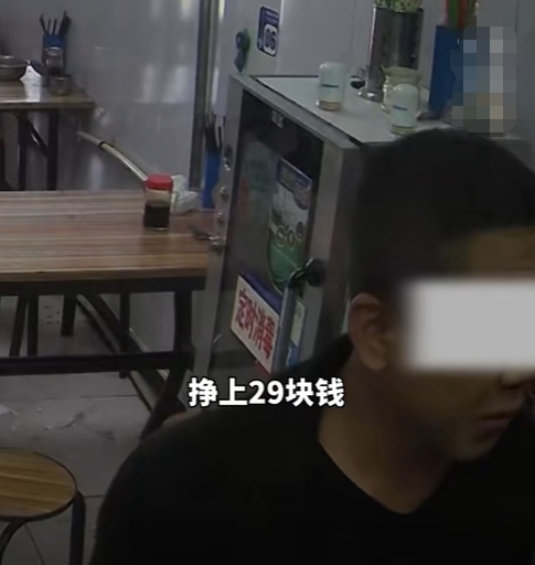 事发当天,这个饭店里面还是挺多人吃饭的。突然有一位男子走了进来,来到收银台前直接问老板:“我帮你干活你能给我29块钱不?洗碗也可以”,老板娘说我们这活有人干了?老板发现男子有点不太对劲,于是问了一句,你这是怎么了。