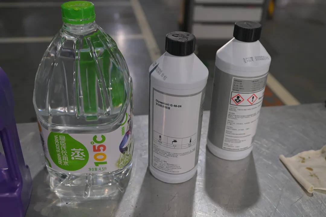 宝马原厂采用的是乙二醇含量非常高的冷却液,而乙二醇的浓度就决定了冷却液的冰点,所以需要冷却液和纯净水按一比一的比例混合,保证浓度在恰当范围内,发挥最大的作用。