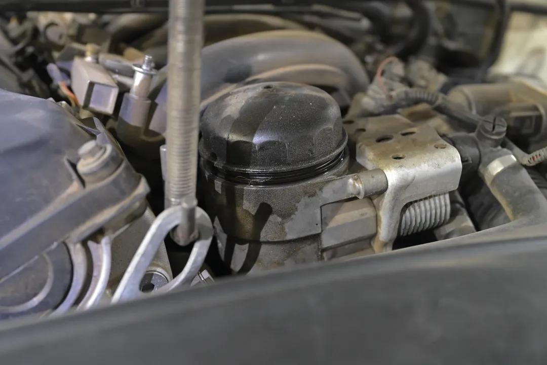 而机滤底座和油底壳垫两处渗漏是比较严重的,前者下部已经有积起来的油液了,后者则随着开起来的风洒得底盘上都是油糊糊一片。——修车还是分个轻重缓急的。