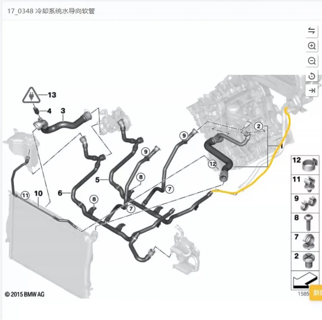 最后一重惊喜:修整期间还发现连接到暖风水箱的水管出现了渗漏迹象(图上黄色这根)。大家都知道,渗漏油车还能动,而一旦漏水就直接趴窝,所以水路的维修优先级一定更高。这就是当前末代N20的声量高于初代B48的原因,也是15、16款宝马3系行情小有回升的主要原因。