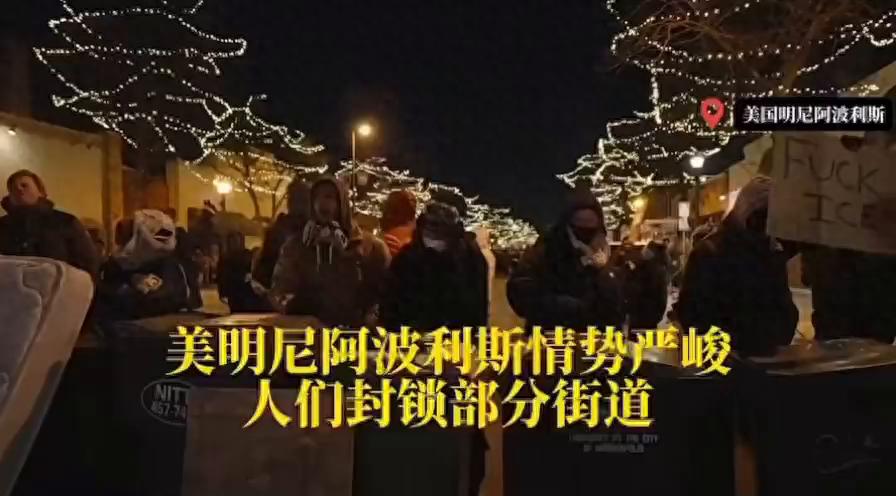 美国明尼阿波利斯枪击事件后情势严峻人群聚集持续封锁街道...