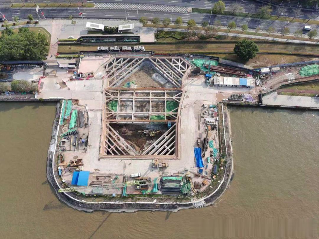 作为联系一江两岸三带的重要通道,会展西路过江隧道地处“珠江新城—国际金融城—琶洲互联网创新集聚区”黄金三角腹地,南起海珠区新港东路,下穿琶洲会展中心四期展馆、阅江路、珠江前航道、临江大道,北接天河区规划员村大道,线路全长约1.24公里,双向6车道城市次干路设计,设计速度为40公里/小时。截至2026年2月底,项目已完成江中沉管管节预制及临时寄存施工,正全面开展浮运航道及基槽开挖、员村涌改道及H匝道隧道主体结构施工,海珠端岸上段也已进入基坑开挖与支护作业阶段。