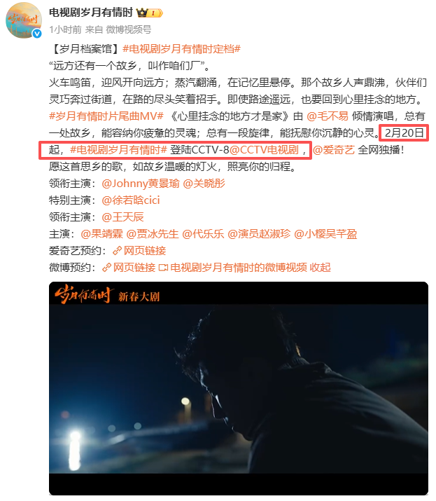 年代青春大剧《岁月有情时》,已经官宣定档2月20日央八开播,奇异果全网独播,这部剧全员戏骨阵容强悍,观众终于要有好戏看了!
