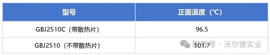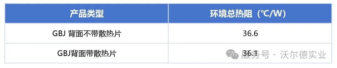 数据显示,集成内置散热片的GBJ整流桥,其Rja值从36.6℃/W降至36.1℃/W,表明内置散热片能有效提升整体散热效率。