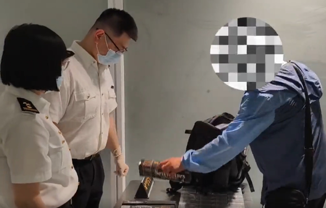 近日,哈尔滨海关查获一起旅客走私香烟进境案。