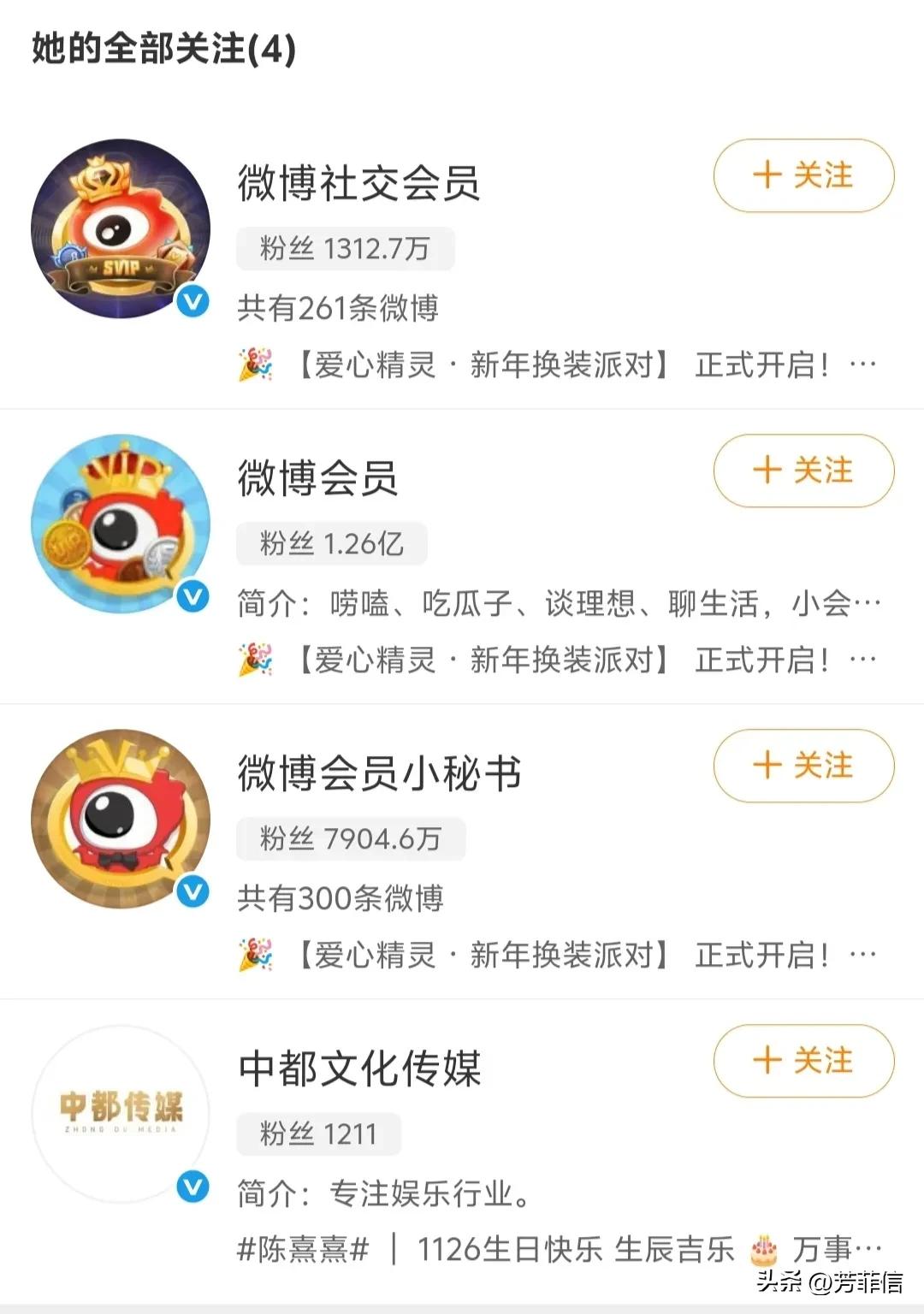 虽然还没有发布博文,但她的关注列表透露着什么不言而喻。