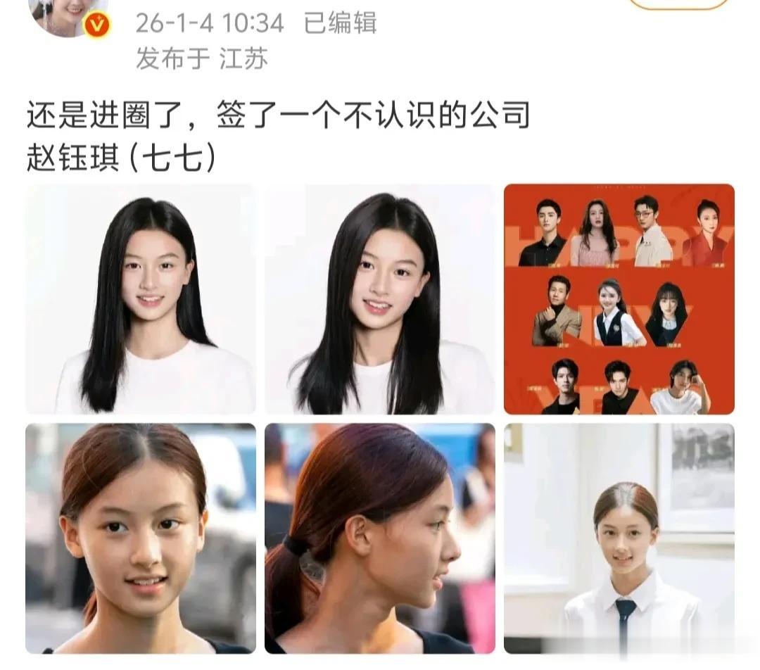 就是说,七七正式签约了经纪公司。公式照已出,整装待发,微博id也向外传达了她的进圈艺名——赵钰琪。