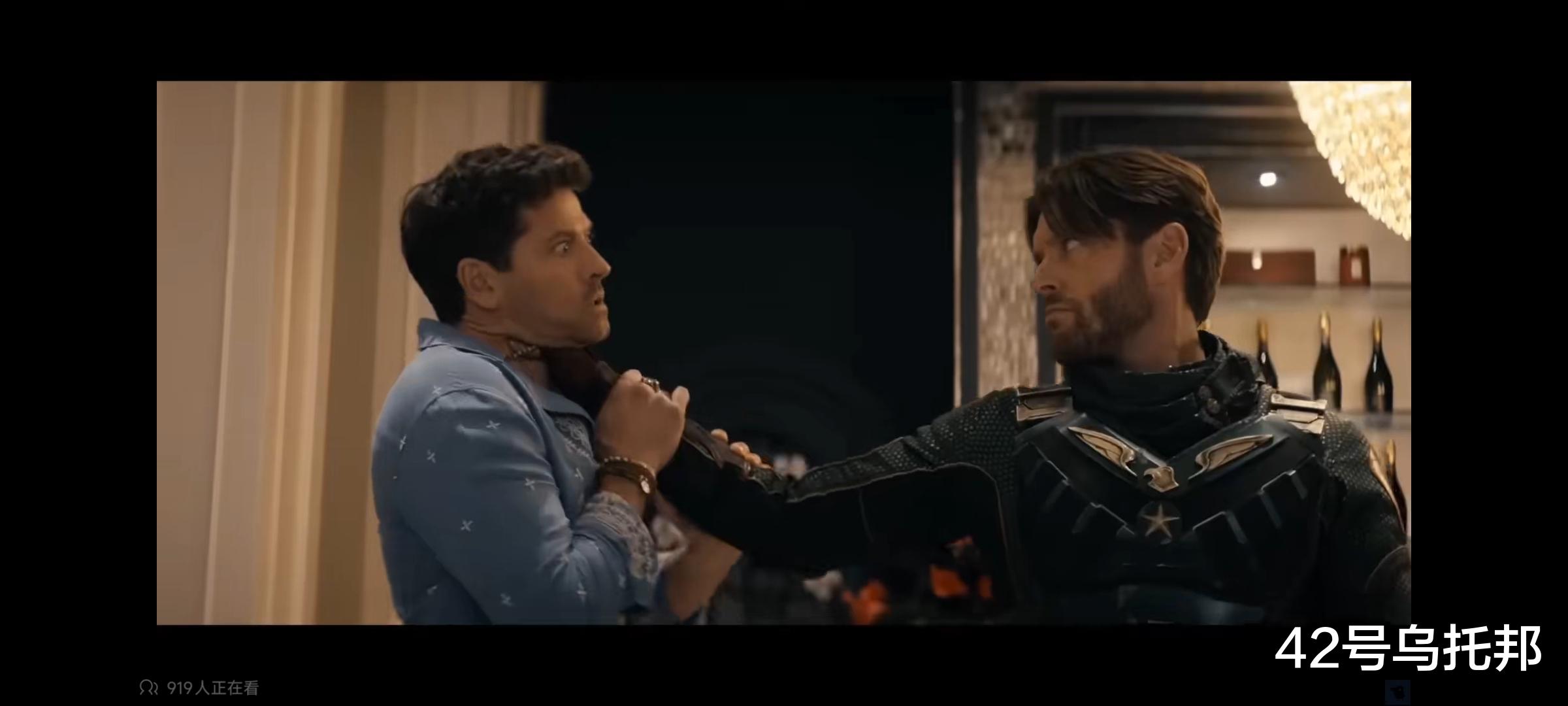 士兵男孩从昏迷中醒来,发现自己穿着裤衩睡在很高档的卧室里,上身穿着祖国人代言的衣服说明身上被人动过,又看见儿子祖国人站在床边,结合自己对当今时代和美国社会和沃特公司和道德人伦的了解,脑补出了最坏结果