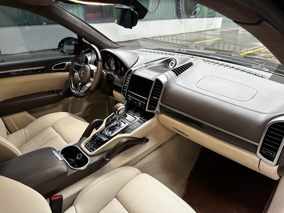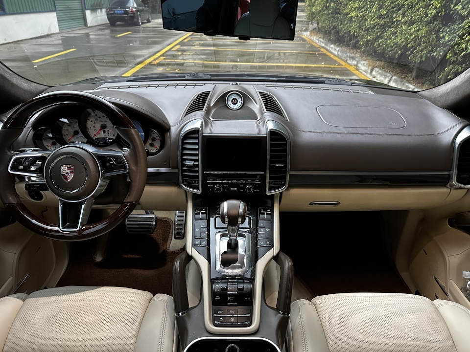 17年款保时捷卡宴4.8Turbo 黑外/米白内 多功能桃木方向盘 无钥匙进入.启动 翻毛篷顶 LED激光大灯 碳纤内饰 门边解锁 运动罗盘 多种运动模式 拨片换档 记忆.通风.加热座椅 定速巡航 坡道辅助 底盘升降 分区空调 全景大窗 侧遮阳帘 前后雷达 倒车影像 电尾门…等。
