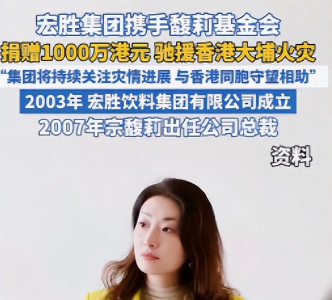 更让人摸不着头脑的是她离职后第三天做的事。香港大埔发生火灾,她带着自己的宏胜饮料和富力慈善基金会,啪一下就捐了1000万港币。这个数字,平时都是腾讯、字节这种巨头才拿得出的。关键是,她刚丢了娃哈哈的位子,正忙着自己的事业,这1000万对她来说可不是小数目。