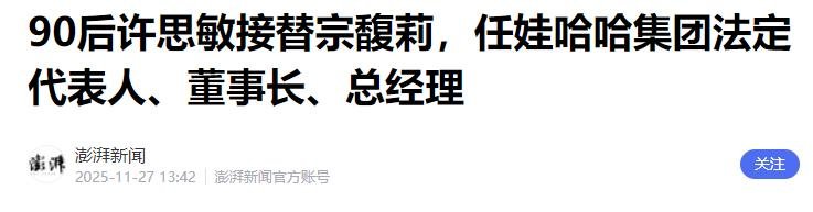 说实话,这事儿一开始看得我云里雾里。宗馥莉,这个顶着"娃哈哈公主"光环的女人,在2025年11月27日突然从娃哈哈集团消失了。不是辞职,不是休假,而是彻底从工商信息里抹去了自己的名字。接替她的是个叫许思敏的31岁年轻人。这操作,谁看了不得愣一下?