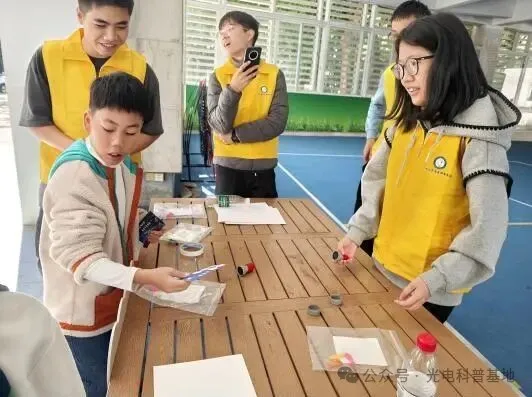1.摆摊游戏区域俨然一座迷你全运会赛场,全运会主题与科普知识的碰撞,让这里的“竞技氛围”、格外热烈。“光影障碍跑” “太阳能小车拉力赛”“镜面接力传球”等竞赛项目前, 小选手们摩拳擦掌,家长观众则在一旁组成“啦啦队”,加油声此起彼伏。