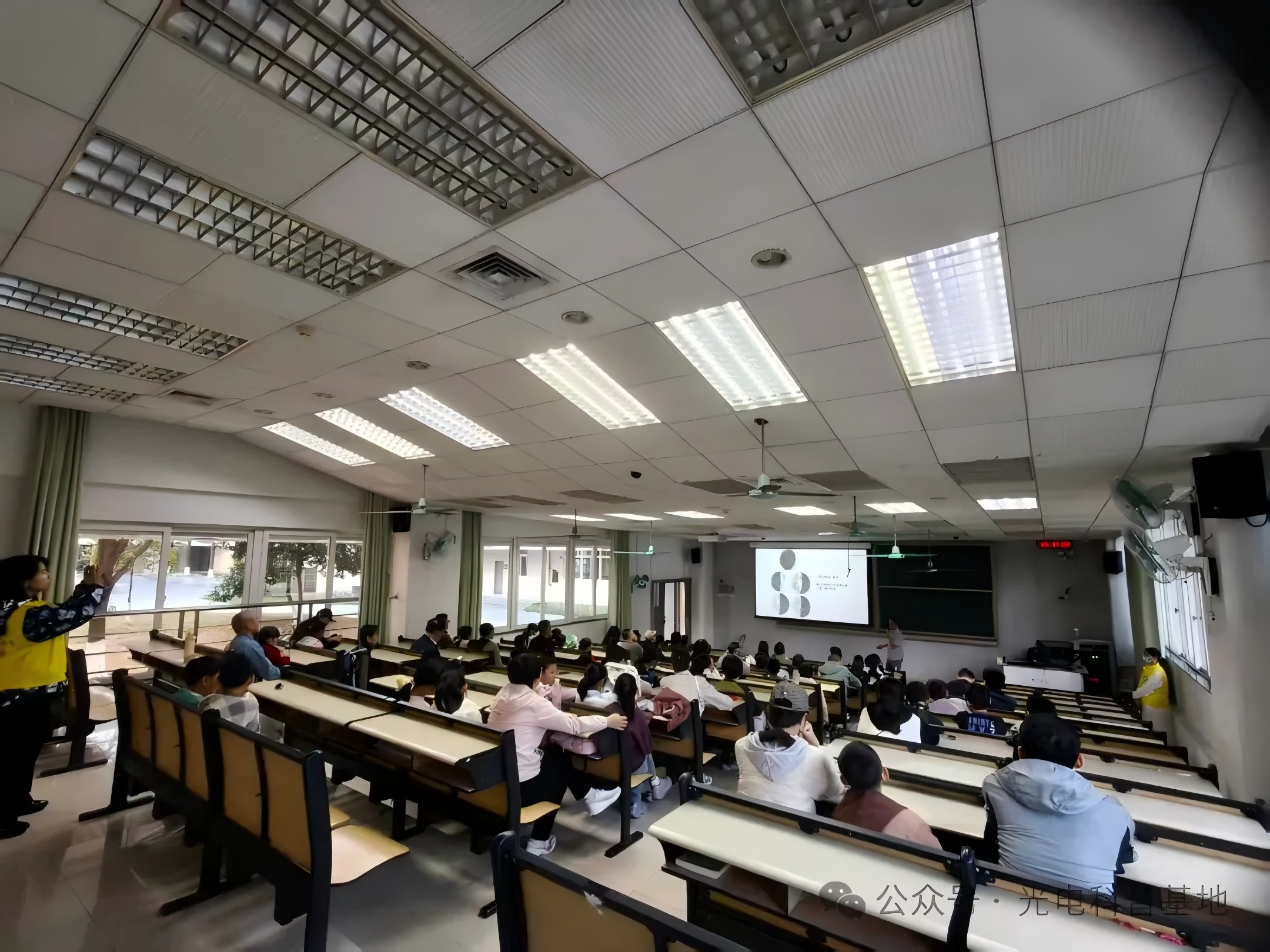 活动伊始,理科南110教室热闹非凡,一场以“望远镜”为主题的天文科普讲座拉开序幕。专家结合生动的图片与动画,从天文望远镜讲起,循序渐进地介绍了一个奇妙的天文世界。专家耐心拆解专业知识,让复杂的科学知识变得易懂。近60分钟的讲座里,孩子们专注倾听,眼中神采飞扬,科学的种子在问答间悄然萌芽。讲座结束后,全体亲子家庭合影留念,一张张笑脸定格下这份对知识的共同向往。
