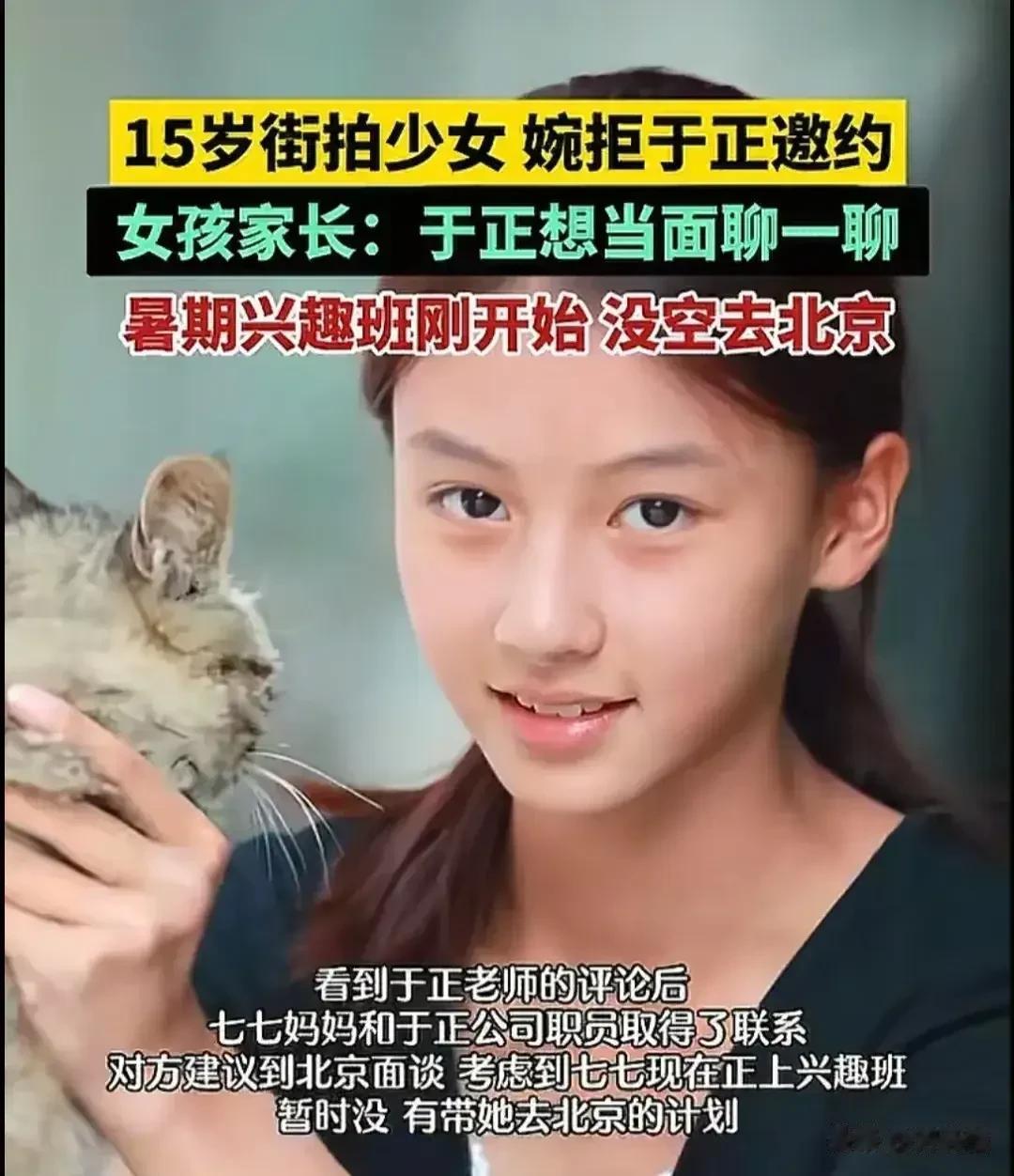 泼天富贵从天而降,戏剧性的是,女孩家长以七七要上兴趣班为由婉拒了于正。